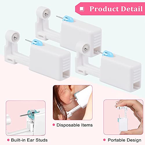 3PCS Ear Piercing Kit,Ear Nail Gun,Self Ear Piercing Gun,Disposable Self Ear Piercing Kit Safety Ear Piercing Gun Kit Tool with 2mm Earring Studs