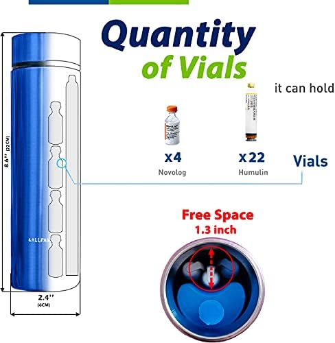 [KEEP INSULIN COLD]–>Our Cooler is a designed in a special way. By building two vacumm cups on top of each other, the space between the cups serve as the first barrier to keep the heat away. Additionally our biogel has great cooling capacity, ensuring that insulin would be kept at fridge temperature for at least 24 hours, even when outside temperature is 104F is actually a vacuum cup inside biogel can keep insulin at fridge temperature for at least 27 hours