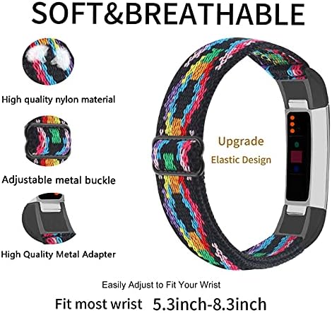 Adjustable Elastic Nylon Bands Compatible with Fitbit Alta and Alta HR Fitness Tracker, 2 Pack Braided Stretchy Wristband Accessory Bracelet Watch Strap Sport Replacement Band for Women Men