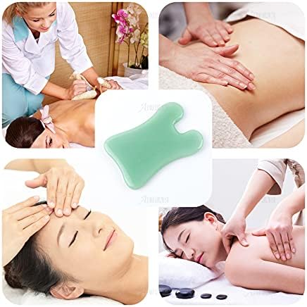 AUEAR, Square Real Jade Gua Sha Board Scraping Massage Tool with Smooth Edge for Physical Therapy Body Facial Spa Acupuncture Treatment Green