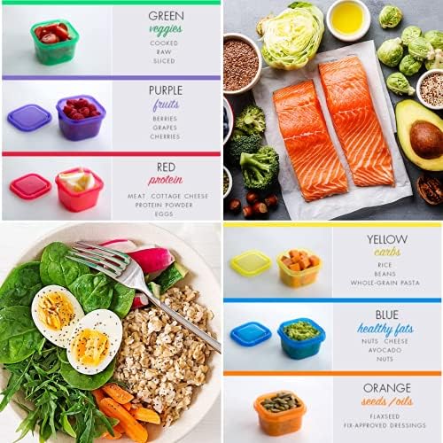 PERFECT PORTIONS: Containers are precisely measured to create a portion control plate for any meal. Pre-portioned out containers are color coded to match your fruits, vegetables, proteins, carbs, healthy fats, seeds, sauces, and salad dressing.