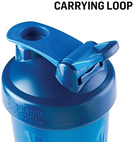 The Blender Bottle Classic 20-Ounce Shaker Bottle makes it easy to maintain proper nutrition and hydration on-the-go. Featuring a patented mixing system—with a 316 surgical-grade stainless steel BlenderBall wire whisk (found only in Blender Bottle brand shaker cups) that moves freely inside the bottle to smooth out drink mixes and meal ingredients—it’s ideal for protein shakes, smoothies, fiber drinks, and meal replacements. It’s also a handy kitchen tool for mixing pancake batter, scrambled eggs, and salad dressings. The wide mouth makes it easy to add scoops of powdered mixes, meal ingredients, and liquids, and emBOSSed markings show both ounces and milliliters for easy measuring anywhere (note that markings on the 20-ounce capacity shaker cup only go up to 12 ounces). Bottle contents and liquids are securely contained thanks to a tightly threaded screw-on lid that creates a leakproof seal, and a flip cap that snaps securely shut for shaking and transportation. The convenient loop top makes it easy to carry the bottle and offers a place to attach car keys while at the gym. The Blender Bottle Classic 20-Ounce Shaker Cup can also be used as a water bottle; the ball can be left inside, as it will never rust, chip, or peel. BPA and phthalate-free, dishwasher safe..