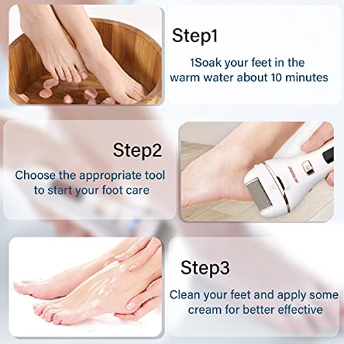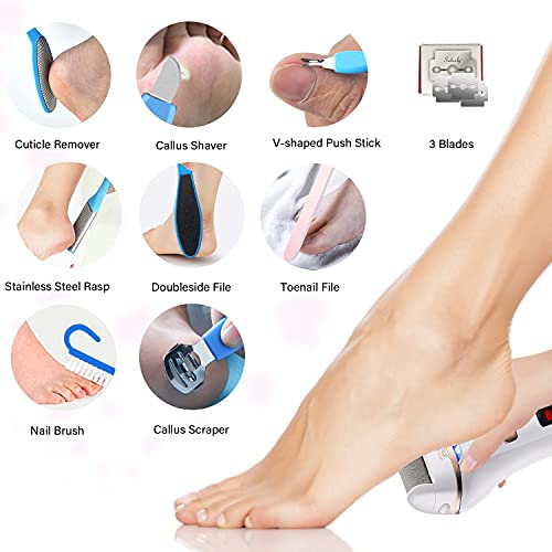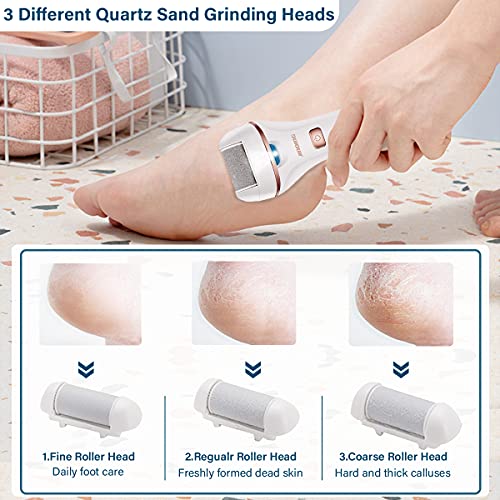 Callus Remover for Feet Electric,Rechargeable Pedicure Kit Tools Foot Care Set,Professional Foot Scrubber for Cracked Heels,Dead Skin,with 3 Roller Heads,2 Speeds,Power Display