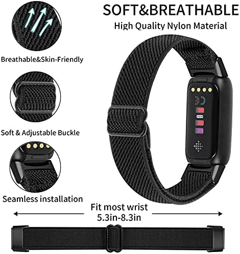 Single-layer elastic wrist band compatible with Fitbit luxe Fitness and Wellness Tracker, Adjustable Elastics Accessories bands made of ultra-supple elastic material , Well made and comfort and with an adjustable buckle These straps adjust easily and can be switched out quickly to adjust for all wrist sizes.