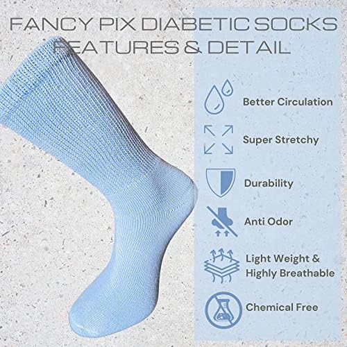 Fancy Pix Women 6 Pairs Colorful Cotton Crew Diabetic Socks, Non Binding Top, Soft Breathable, Smooth Toe Seem For Diabetic, Edema, Neuropathy, Better Circulation, Fits US Shoe Size 6-11