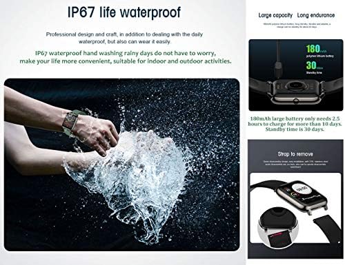 ⌚️Fast and Convenient Charging: Innovative magnetic charging (with USB charging cable + charging pin), you can switch to charging mode in 1 second, 180mAh large battery only needs 2.5 hours to charge for more than 10 days. Standby time is 30 days.