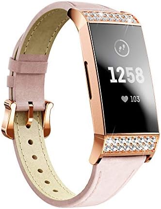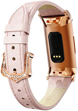 GELISHI Compatible for Fitbit Charge 4/Charge 3 Bands Women Men,Slim Genuine Leather Watch Band Accessories Replacement Strap for Fitbit Charge 4/ 3/3 SE Fitness Watch – Pink (No Tracker)