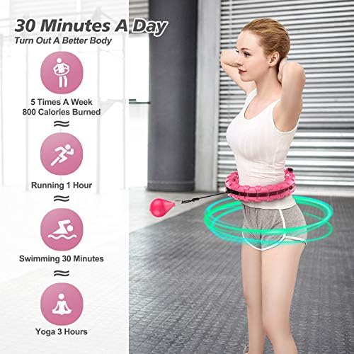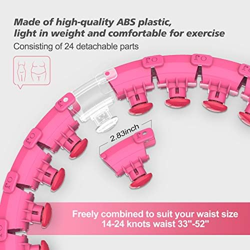 DETACHABLE DESIGN: It consists of 24 detachable parts, which can be disassembled expediently. The weighted hoop for exercise can be adjusted to 16 ( suit for 31 inch / 79cm ) to 24 ( 52 inch / 132cm ) sections according to the waist which fits all sizes. The sections and convenient safe lock are easily detached, making it easy to store.