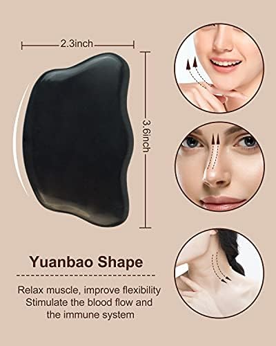 SHAPES: 4 Pcs guasha stones with different shapes (heart, yuanbao, wave, fish) fit different parts of your body (face, arm, shoulder, back, leg, etc.)