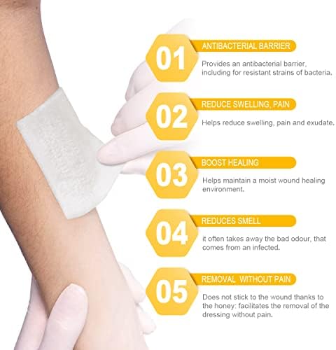 EASY & COZY ON / OFF: Just clean, dry the wound then cover the honey side over the wound, secure it with secondary tape or dressing at last. The wound care pads do not stick to the wound to improve comfort during dressing changes.