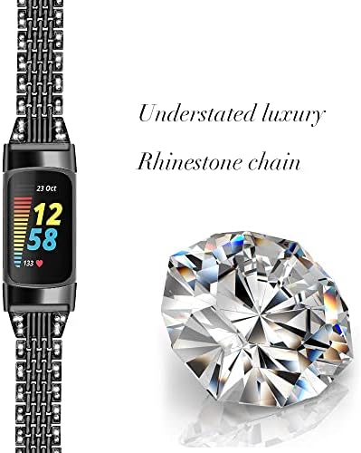 Hopply Compatible with Fitbit Charge 5 Bands for Women Girl, Replacement Metal Fitbit Charge 5 Wristbands Strap with Bling Rhinestone Only for Fitbit Charge 5 (Black-A)