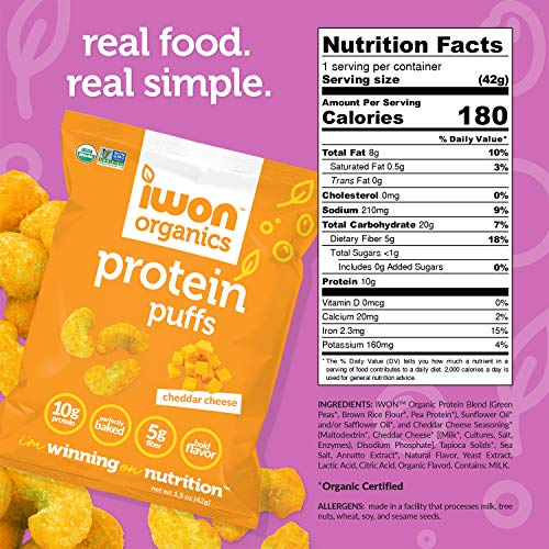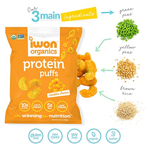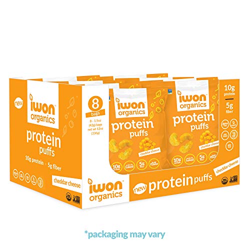 IWON Organics Cheddar Cheese Flavor Protein Puff, High Protein and Organic Healthy Snacks, 8 Bags