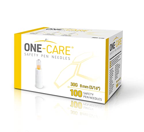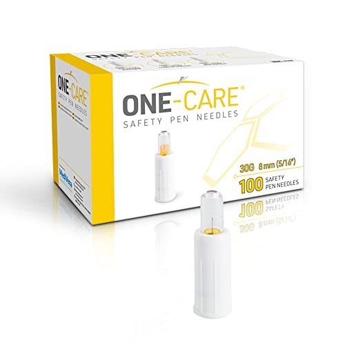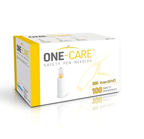 MediVena ONE-CARE Safety Pen Needles, 30G, 8mm, Box of 100, Safe Insulin Injection, Compatible with Most Pen injectors