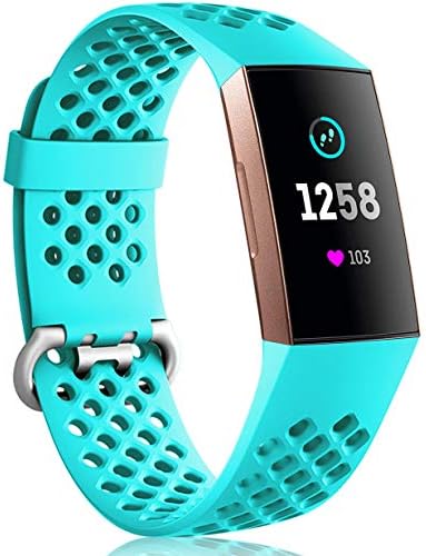 Nofeda Bands Compatible with Fitbit Charge 4 / Charge 3 / Charge 3 SE, Air Holes Breathable Sport Wristband Replacement for Fitbit Charge 3/ Charge 4 Fitness Tracker Women Men, Small, Teal