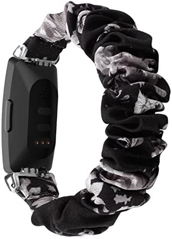 OCEBEEC Scrunchies Compatible with Fitbit Inspire 2 /Inspire HR/Inspire Bands, Women Soft Replacement Elastic Stretchy Cloth Pattern Printed Fabric Wristband Bracelet(Black/Grey Flower)