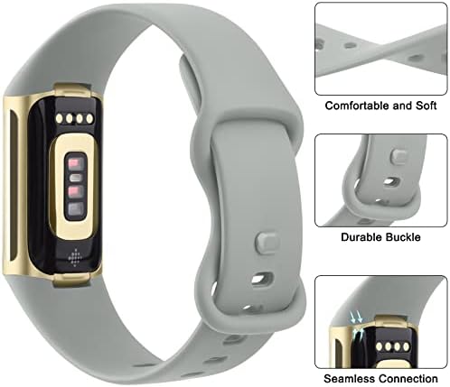 Pack 3 Silicone Bands for Fitbit Charge 5, Adjustable Replacement Wristbands for Fitbit Charge 5 Women Men Small Large (Without Tracker) (Small: for 5.7″-7.3″ Wrists, Black+White+Grey)