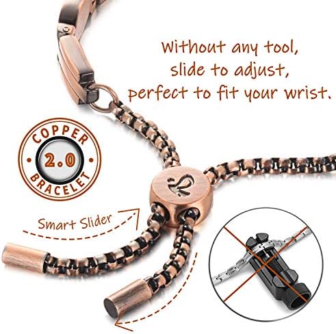 RainSo Women Pure Copper Magnetic Therapy Health Care Bracelets Pain Relief for Arthritis Adjustable Design with Display Box