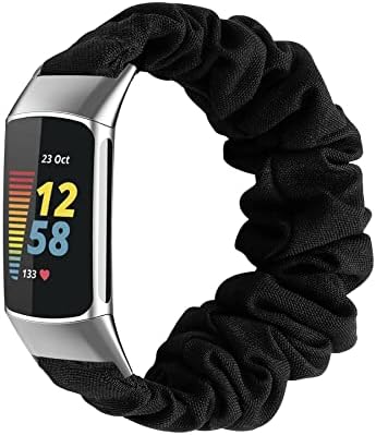 Scrunchie Watch Bands Compatible with Fitbit Charge 5 Bands for Women, Soft Fabric Elastic Replacement Wristbands Birthday Gifts for Charge 5 (Small (4.7“-6.6”in), Type-E)