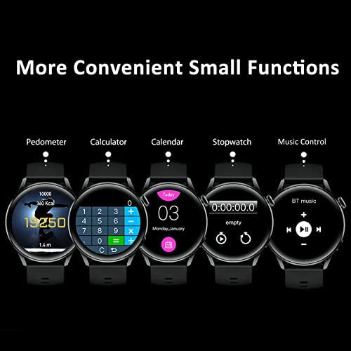 【Bluetooth call function & Smart message reminder】The bracelet is free to make calls, and the bracelet can view call logs or social media notifications directly from your wrist, allowing you to stay connected even on the go Check your phone calls, text messages, weather alerts, music player Controls, Alarms, Stopwatch, Calendar, Find My Phone/Watch. You can also set your own vibrating reminders (like activity or hydration reminders) if you want to keep your life running smoothly.