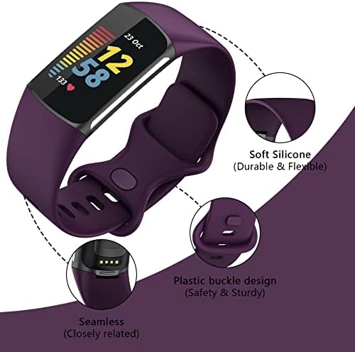 TopPerfekt Bands Compatible with Fitbit Charge 5, Adjustable Soft Silicone Sport Replacement Watch Band Straps Wristbands Bracelet for Charge 5 Activity Tracker Women Men