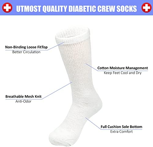 Utmost Physicians Approved Diabetic Crew Socks for Unisex Men Women 3, 6 or 12-Pack (9-11, 3 Pairs White)